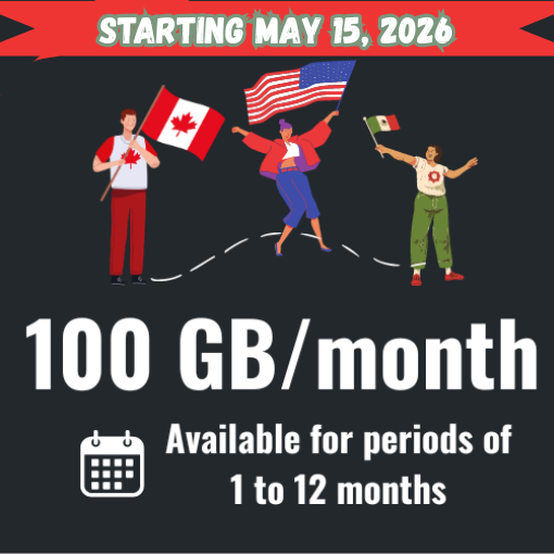 100GB/month Canada/USA/Mexico – 1 to 12 months – With Expiration